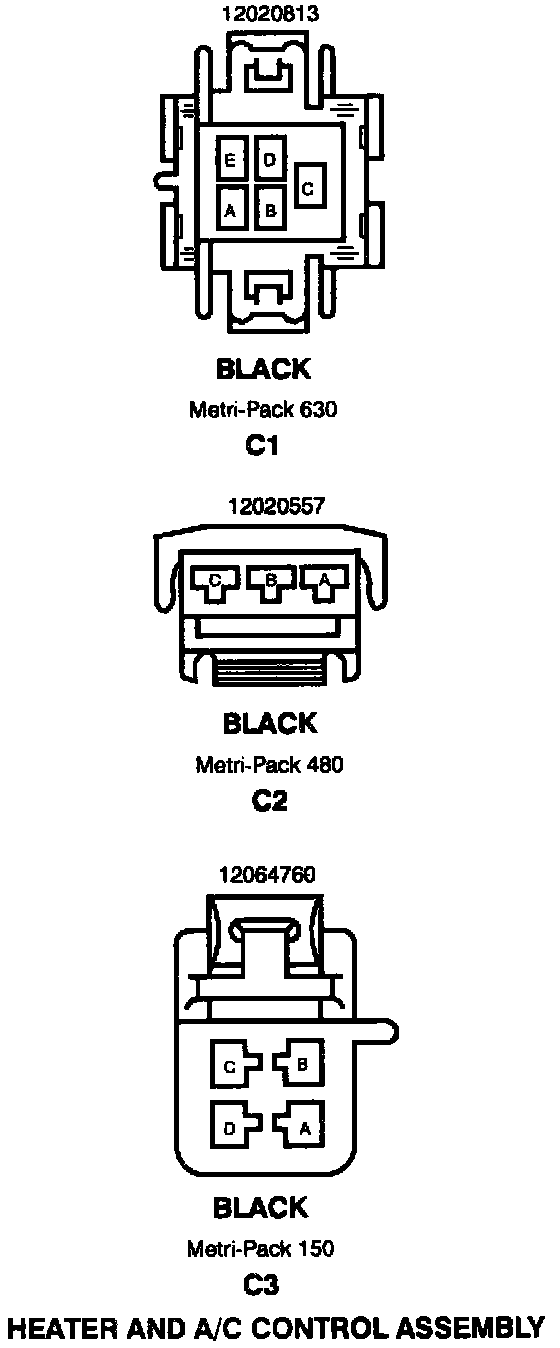 Harness Connector Faces: Heater And A/C Control Assembly: