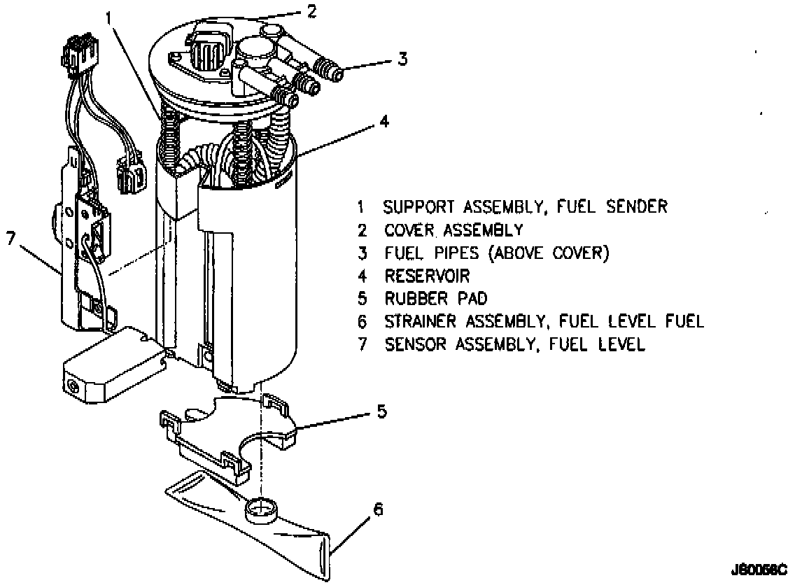 - When removing the modular fuel sender assembly from the fuel tank, be aware that the reservoir bucket is full of fuel. It must be tipped slightly during removal to avoid damage to the float. Discard fuel sender O-ring and replace with a new one.