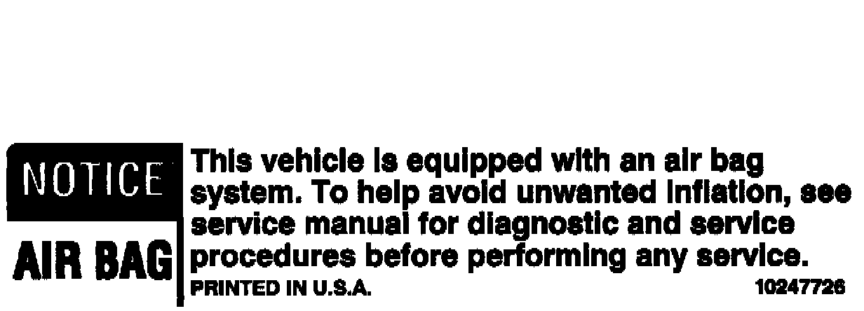 The forward discriminating sensor on the above listed models was originally equipped with the attached "NOTICE" label. Replacement parts ordered through GMSPO will NOT be equipped with this label. If the sensor is replaced, the label, P/N 10247726, is to be ordered separately by the dealer and installed on the new sensor.