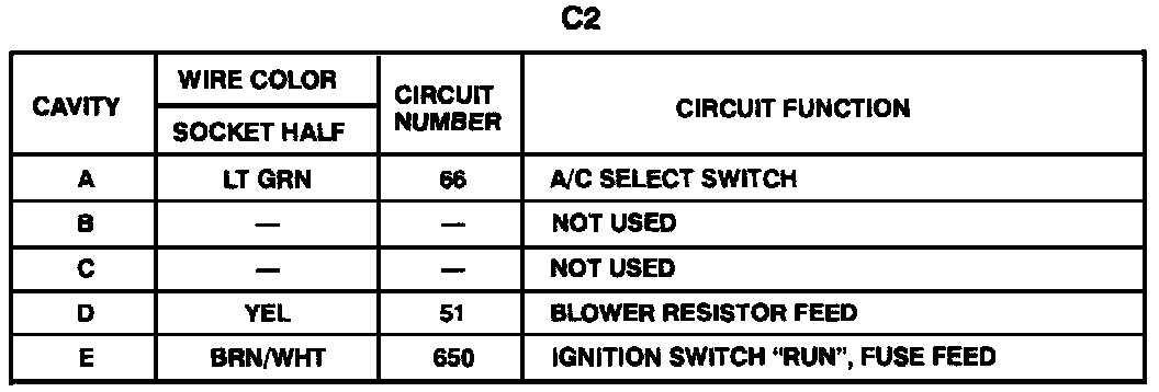 Harness Connector Faces: Heater-A/C And Rear Defogger Control Assembly- C2: