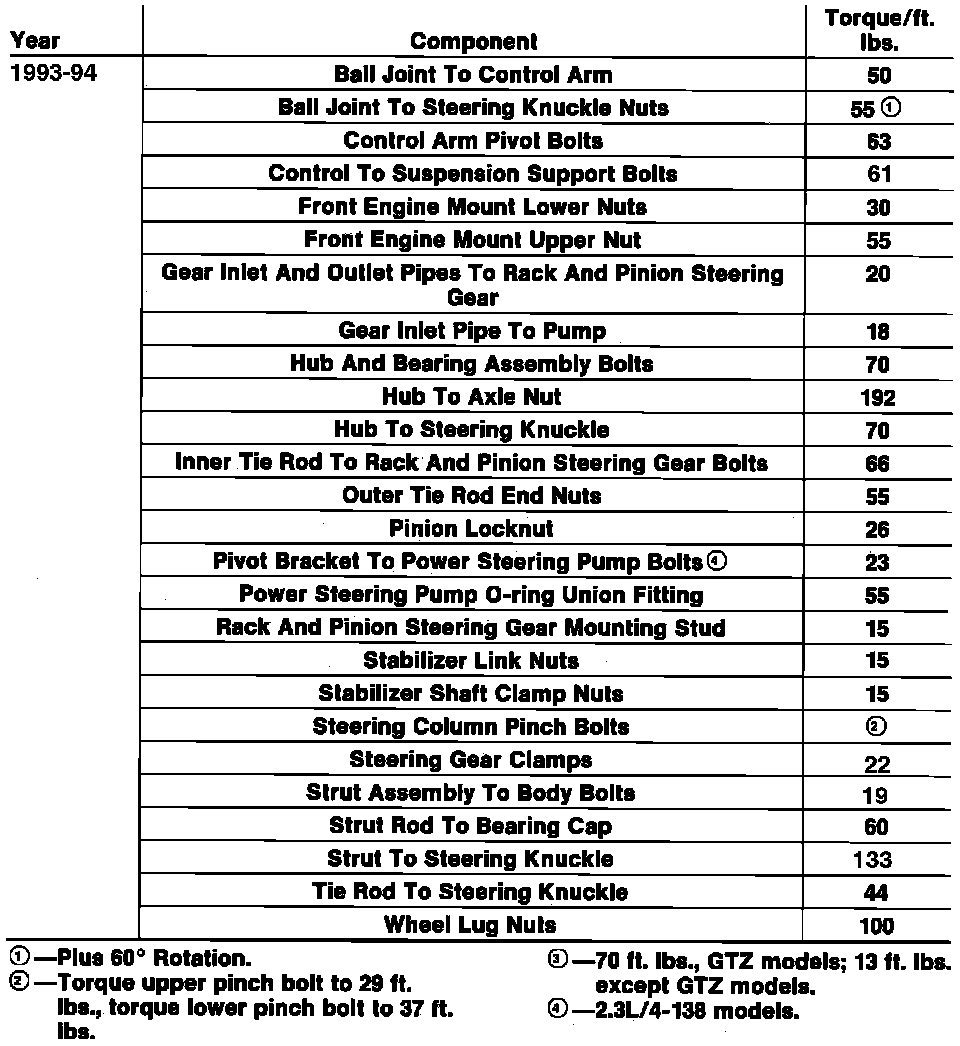 Tightening Specifications: