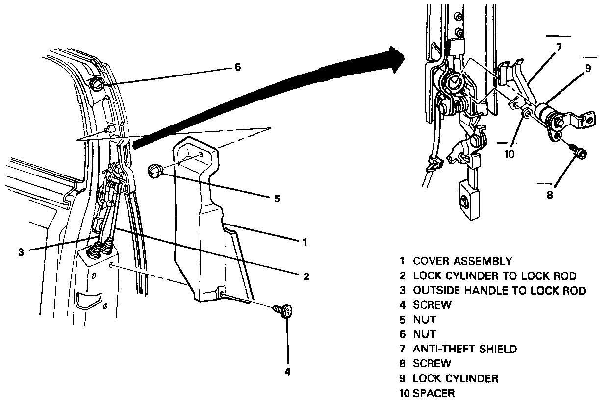 4. Rivets securing lock module assembly to door using 3/16 inch x 1/4 inch peel type rivets.