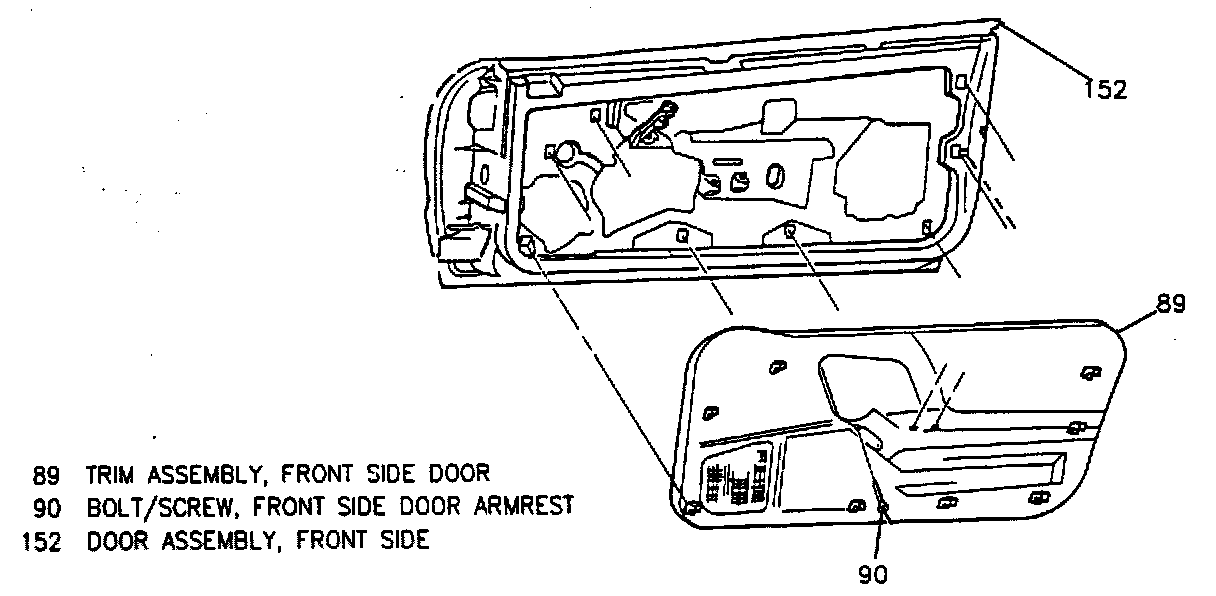 1. Trim assembly (89) to door inner panel.