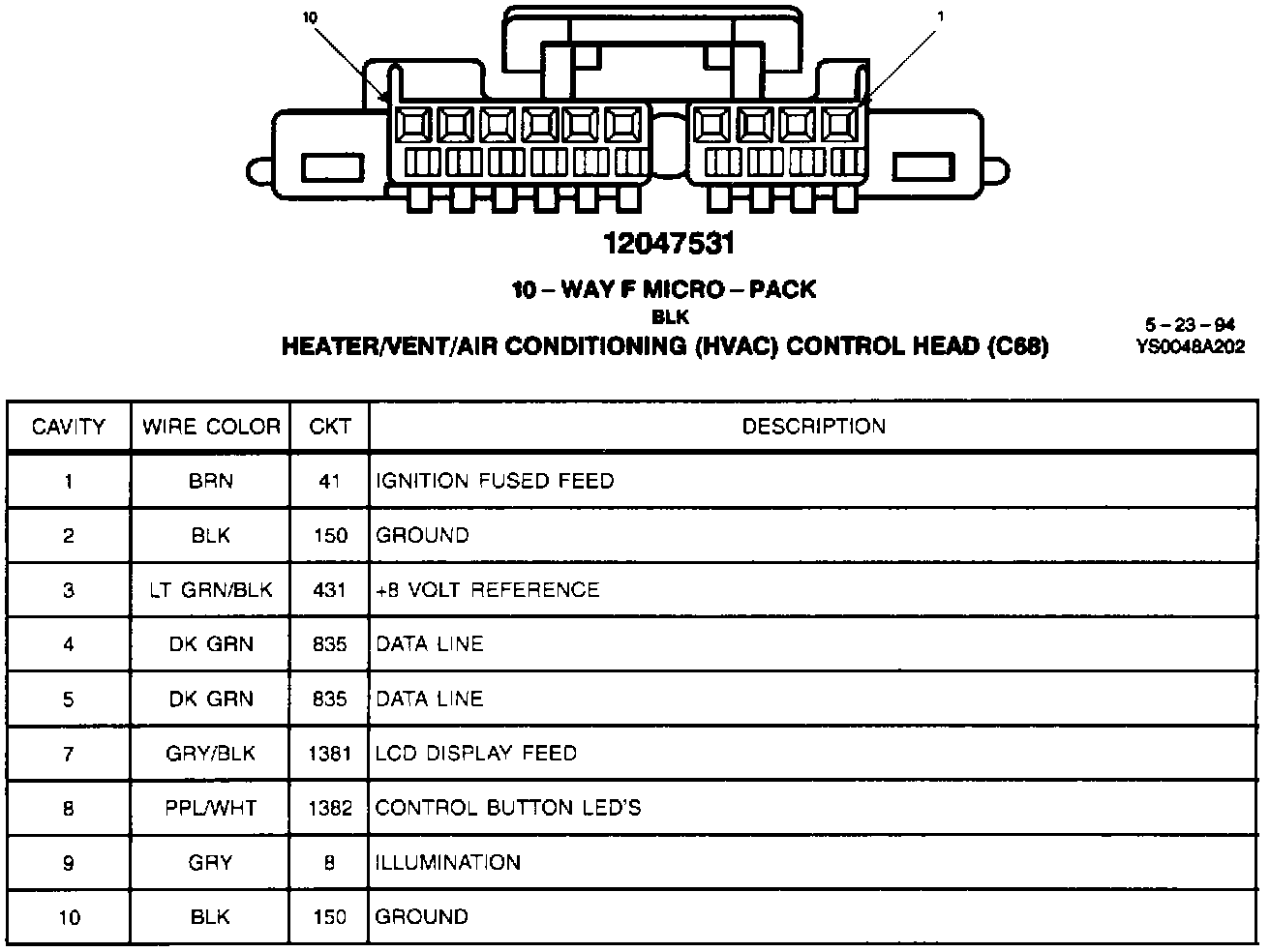 Heater/Vent/Air Conditioning Control Head (C68):