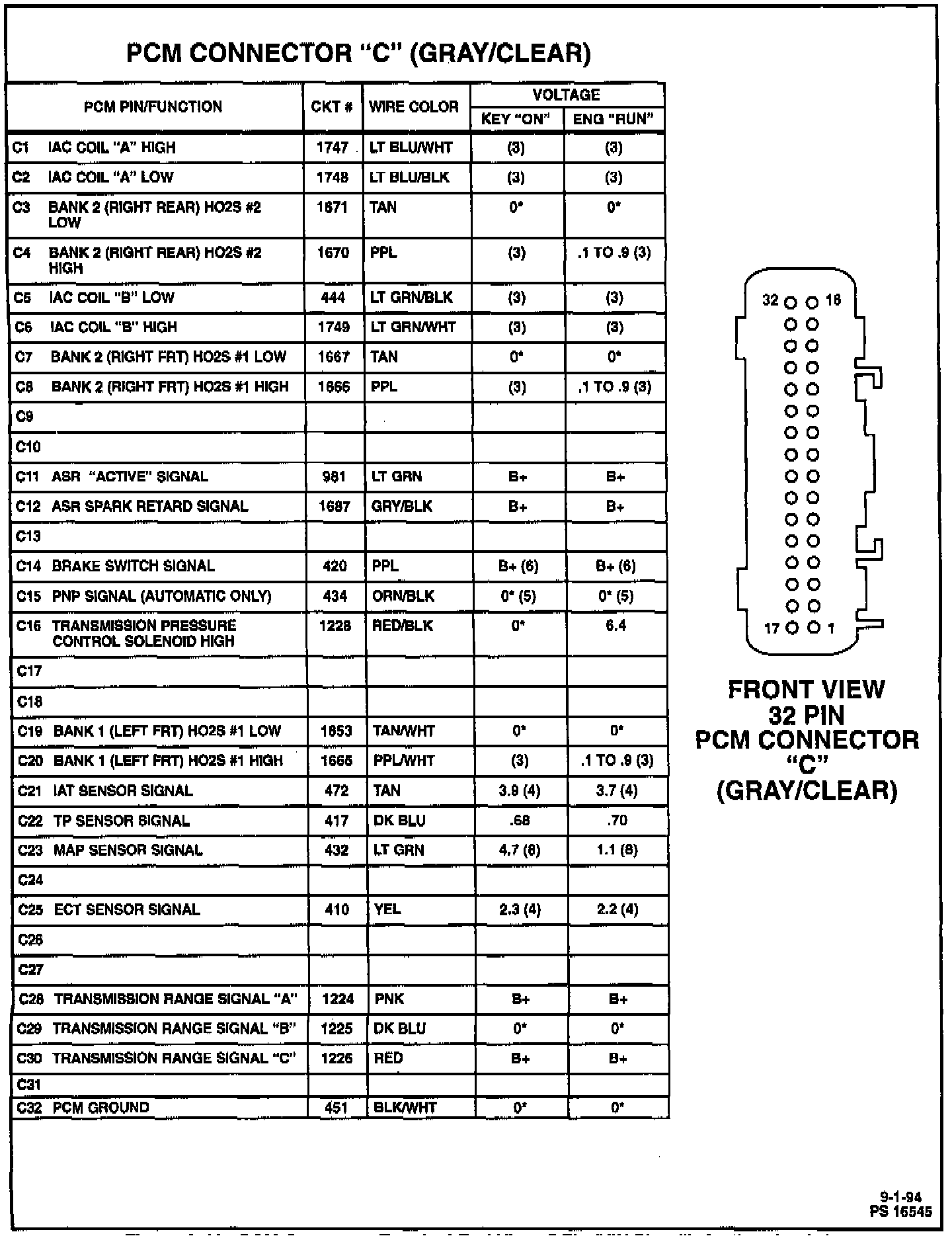 This information applies to the PCM connector charts in the images above. These charts may be used with the J 39700-A breakout box in conjunction with J 39700-110 and J 39700-140 cables and high impedance digital multimeter J 39200 to obtain voltage present for each circuit listed. Install the breakout box between the PCM connectors and the PCM. The breakout box pin numbers correspond with the PCM connector pin numbers. Voltage may vary slightly, but should be very close. Certain exceptions are called out in the chart legend below.