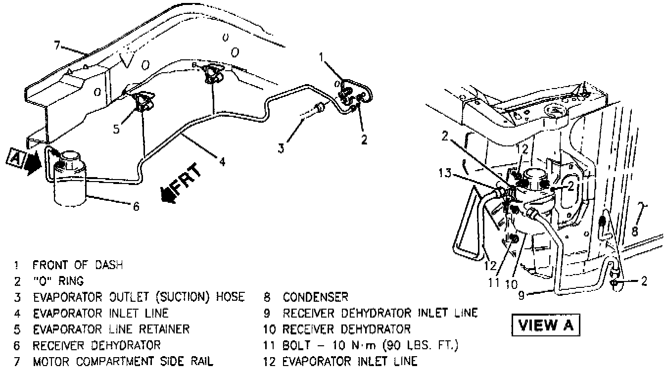 3. Both lines at receiver dehydrator using new "0" ring seals.