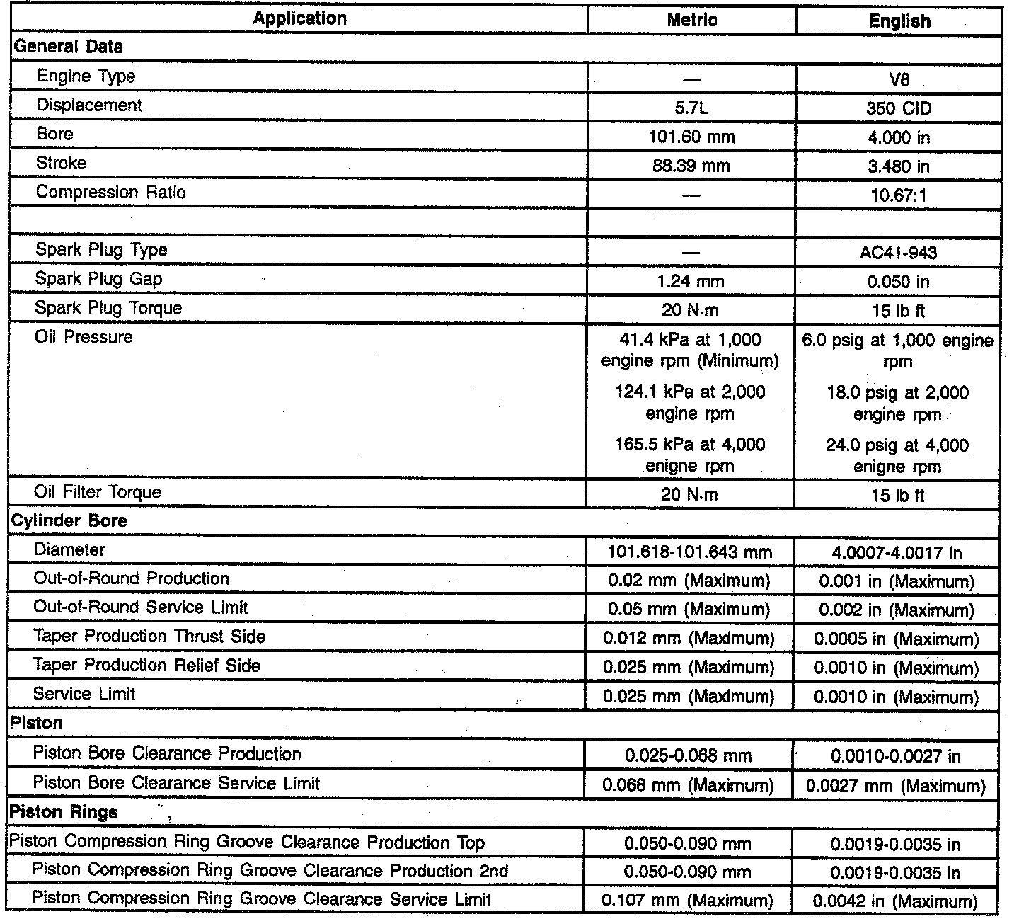 General Data, Cylinder Bore, Piston, Piston Rings: