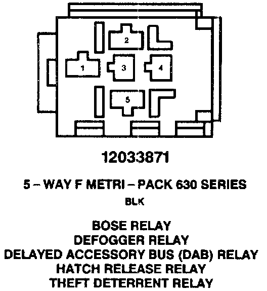 Bose Relay, Defogger Relay, Delayed Accessory Bus (DAB) Relay, Hatch Release Relay & Theft Deterrent Relay: