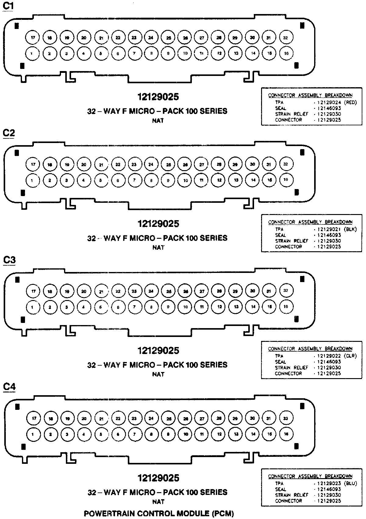 Powertrain Control Module (PCM) C1,C2, C3, C4: