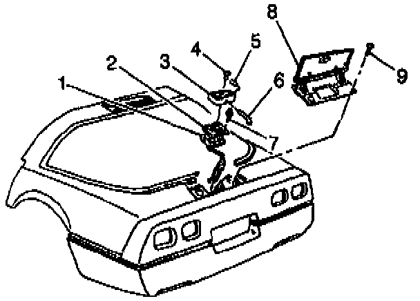 8. Install the filler door bezel (8) and the attaching screws (9). Tighten the filler door bezel screws to 2 Nm (18 lb in).