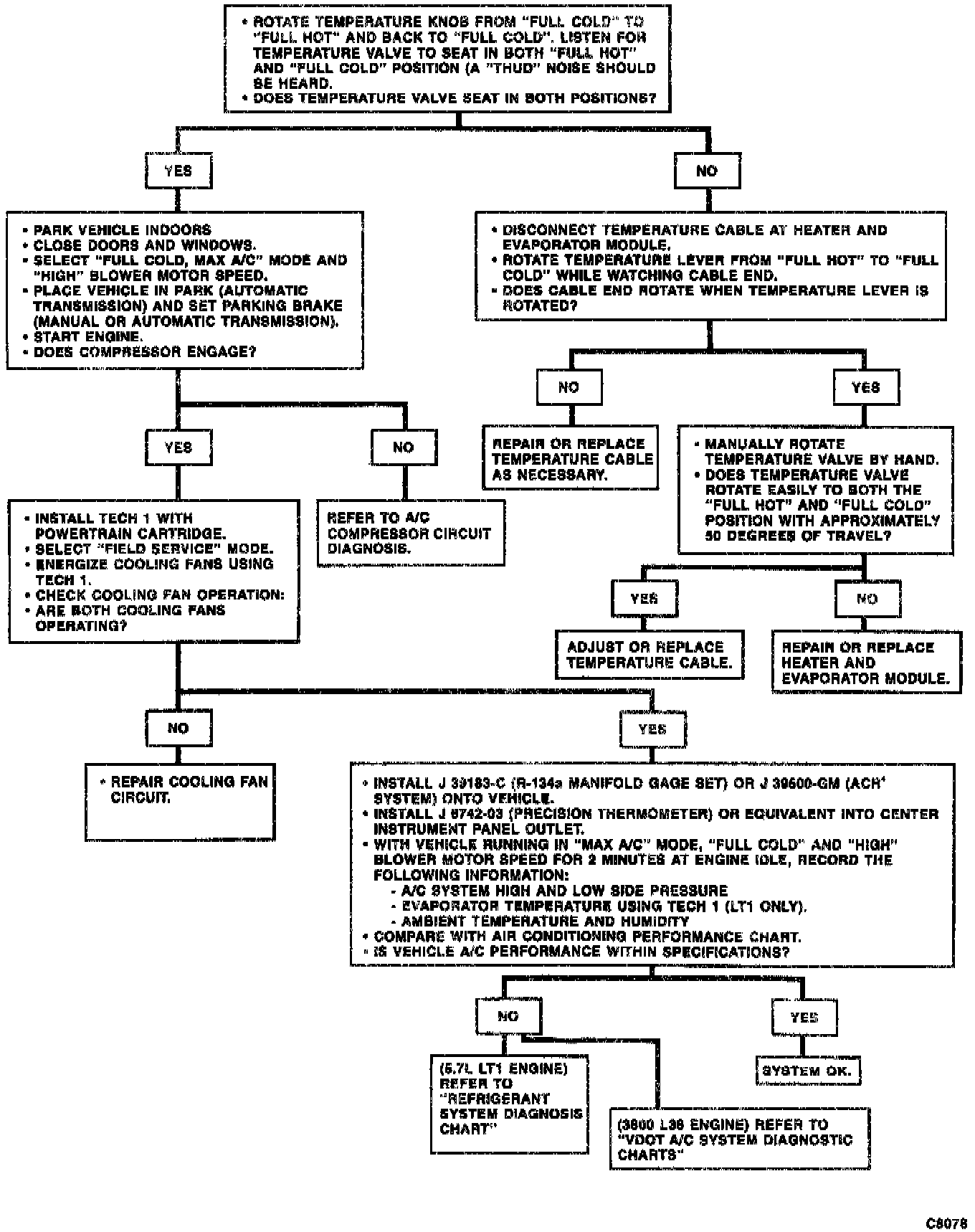 Before performing the air conditioning performance test, a functional test should he made to assure that the air distribution system valves are functioning properly to route all the air passing though the evaporator to the outlets. Refer to "Functional Test." Functional Test/Check