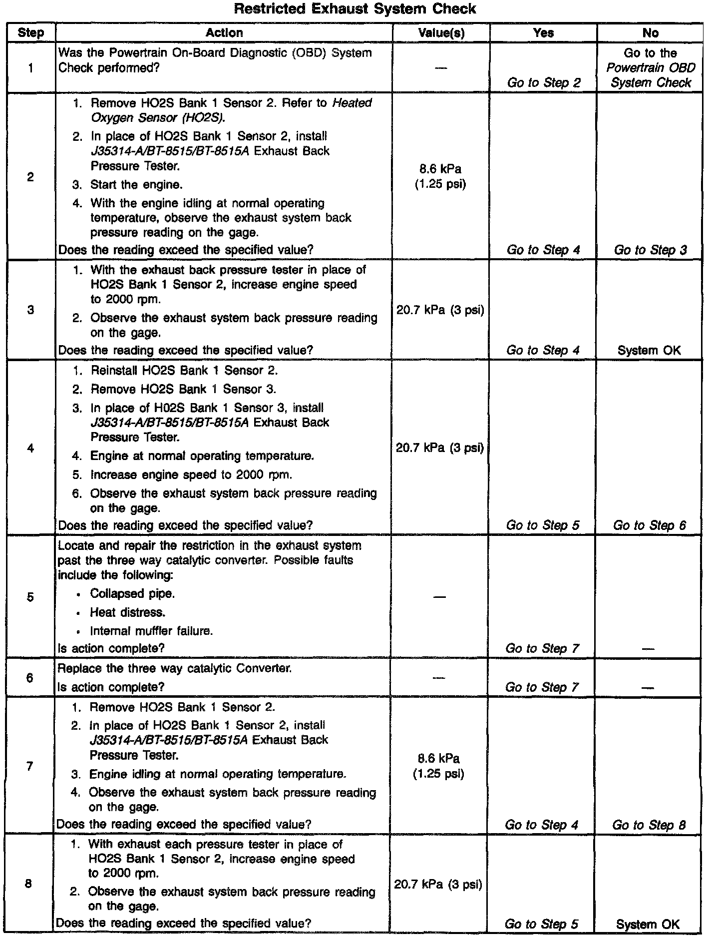 System Check - Restricted Exhaust