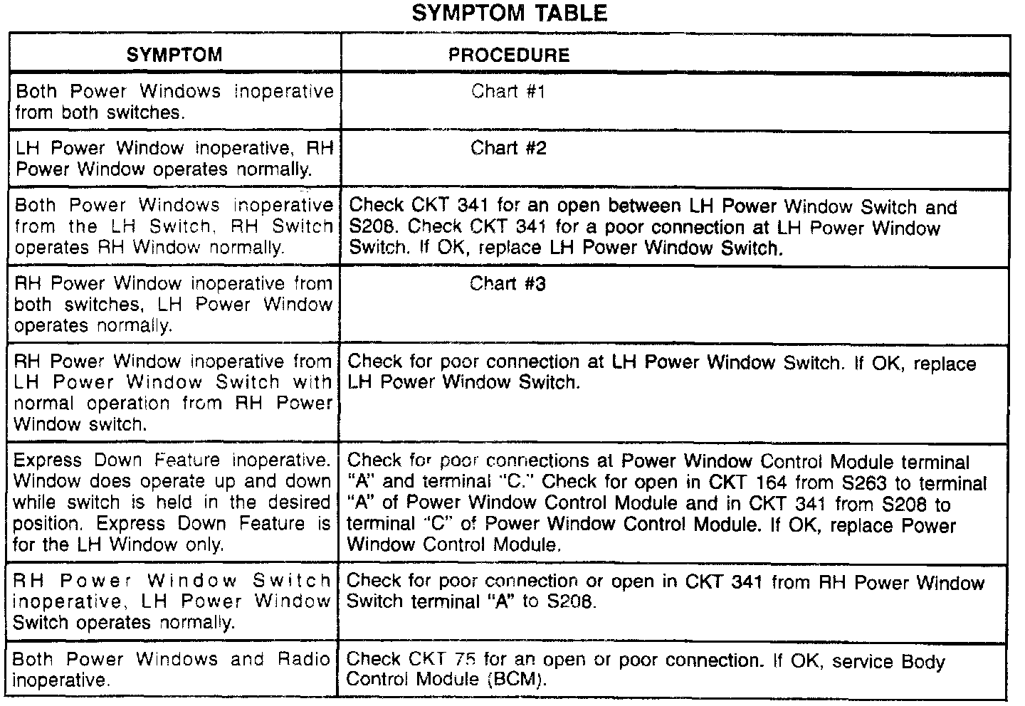A Symptom Table - Power Windows