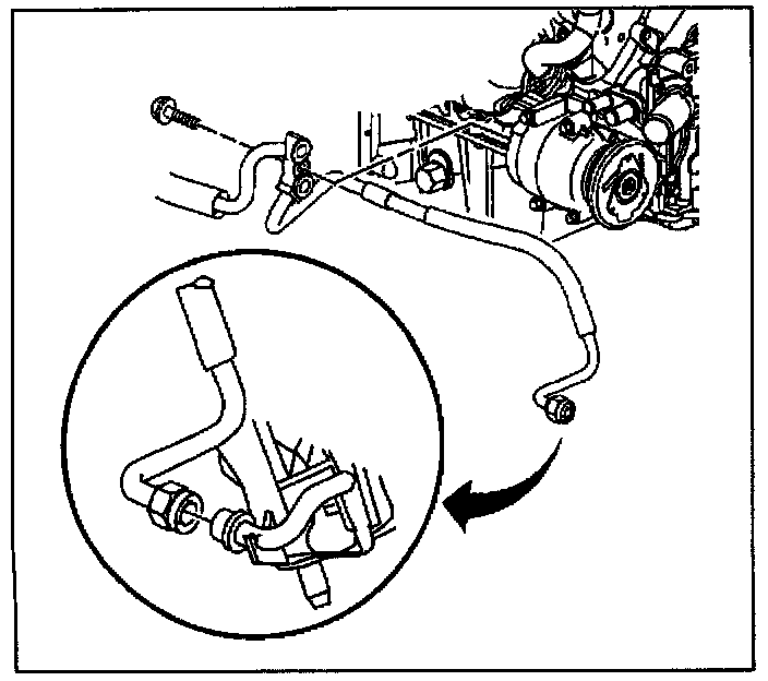 3. Remove the compressor hose bolt from the compressor.
