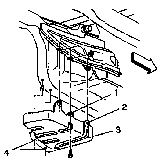 13.3. Install the remaining bolts (2 and 5). Tighten the fuel tank strap/shield bolts to 25.5 Nm (19 lb. ft.).