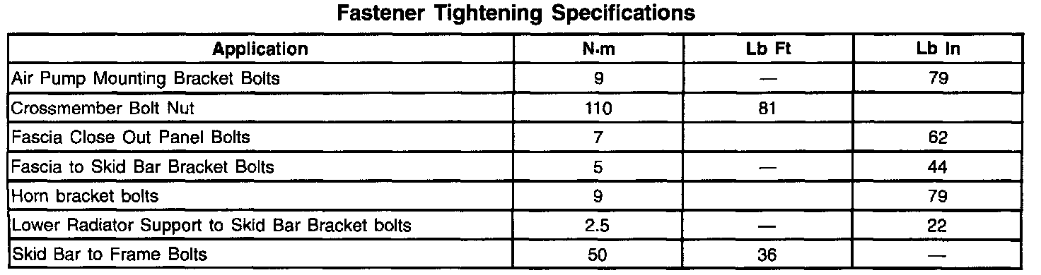 Frame & Underbody: Fastener Tightening Specifications: