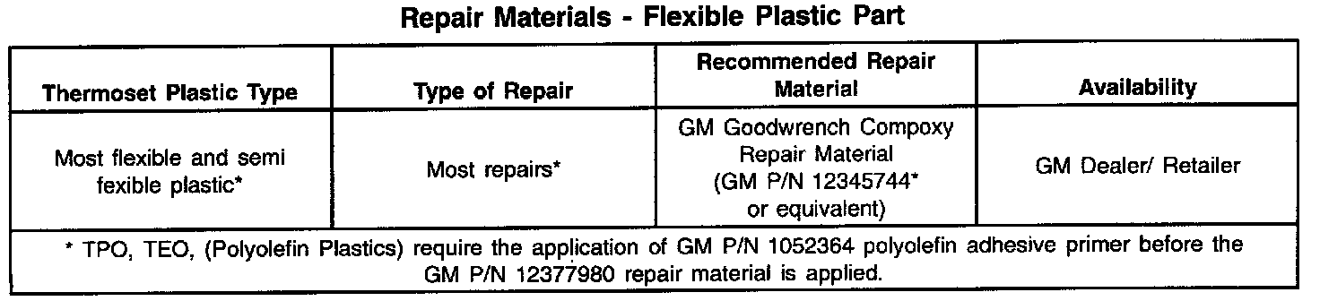 Repair Materials: Flexible Plastic Part: