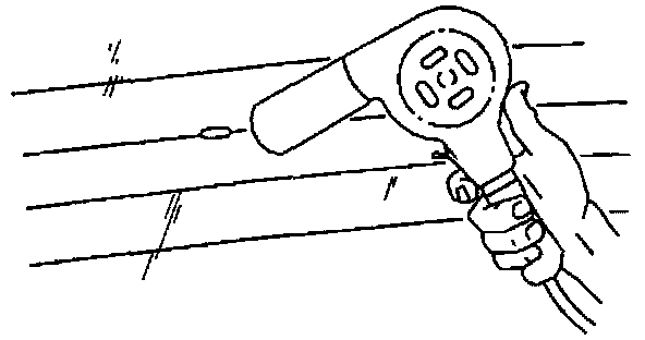 ^ Hold the heat gun nozzle 25 mm (1 in) from the repair surface.