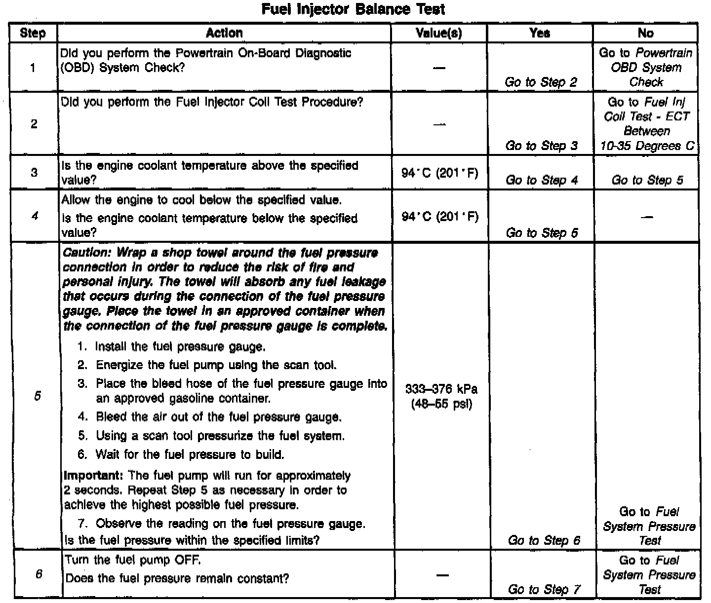 Fuel Injector Balance Test