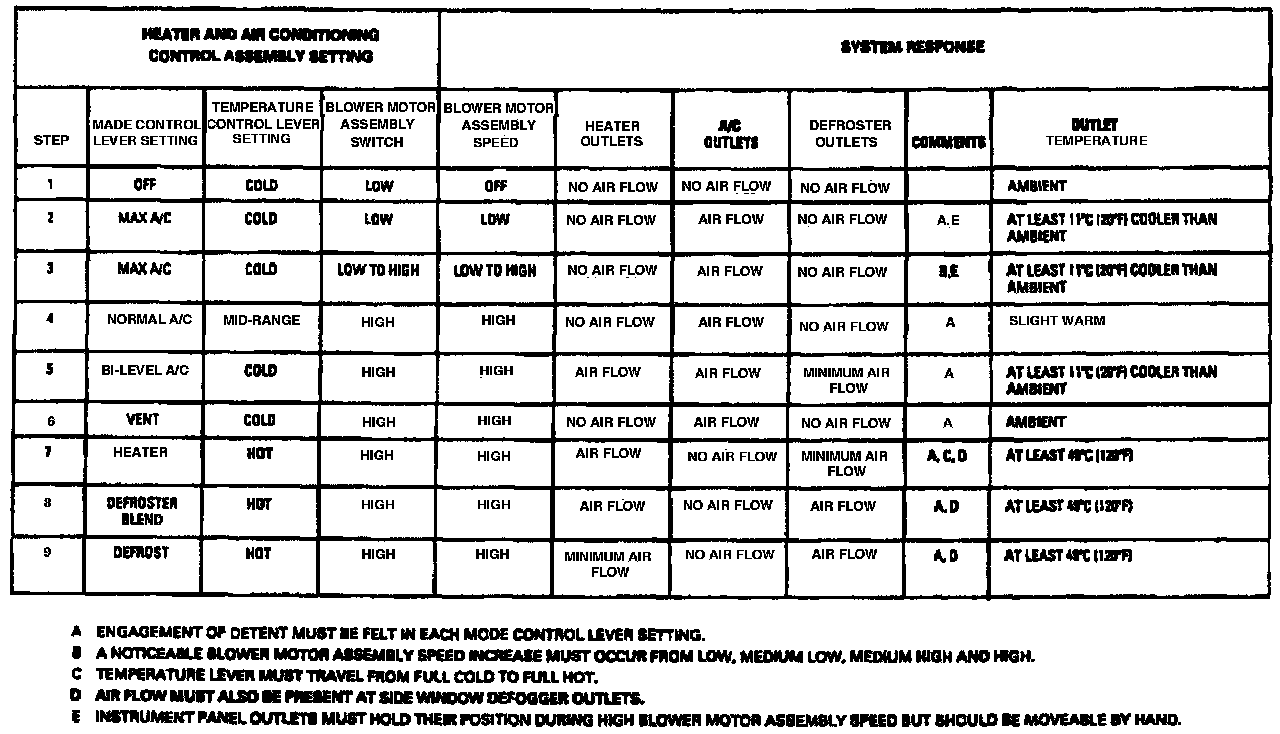 ^ Blower motor inoperative or incorrect speed.
