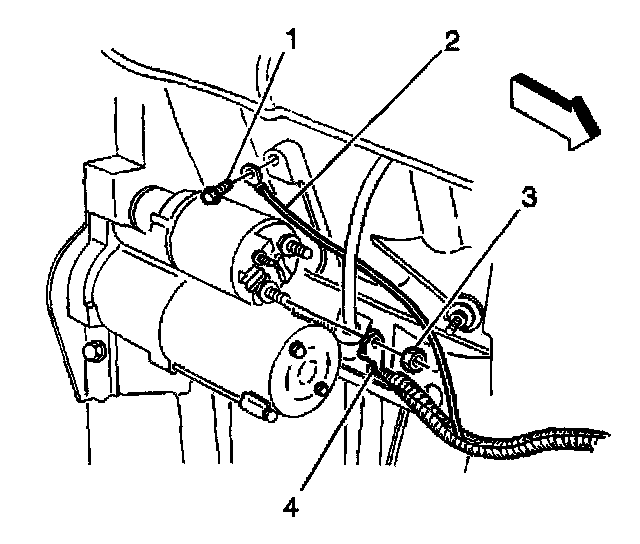 6. Remove the positive battery cable to starter motor nul (3).