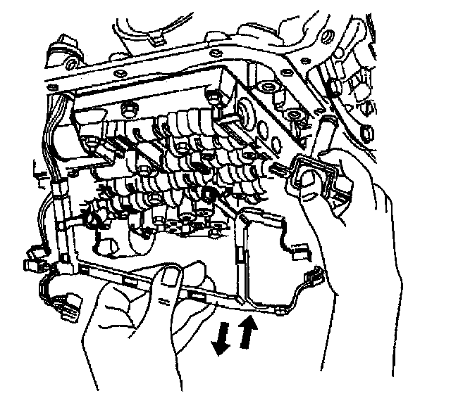 9. Install but do not tighten the valve body bolts which retain the internal wiring harness.