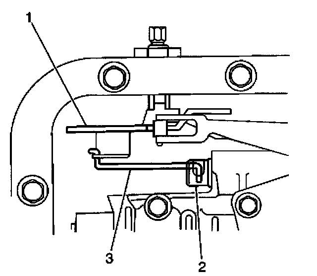 2. Verify that the manual valve link (3) is installed properly to the inside detent lever (1) and the manual valve (2).