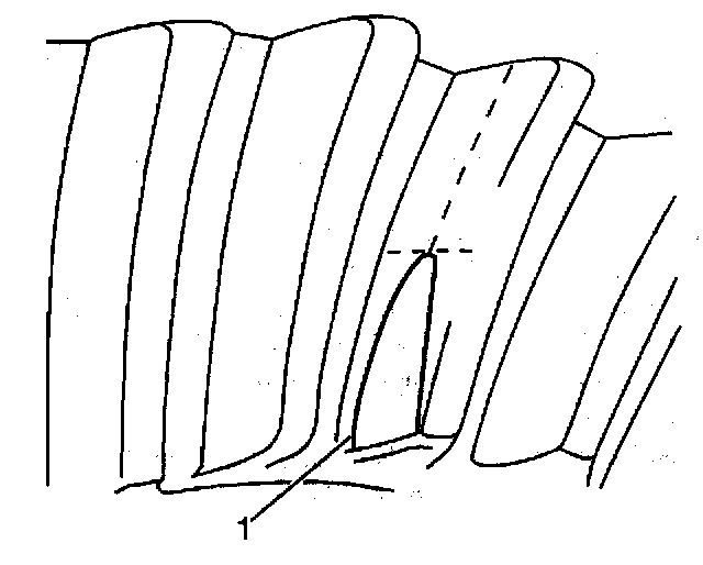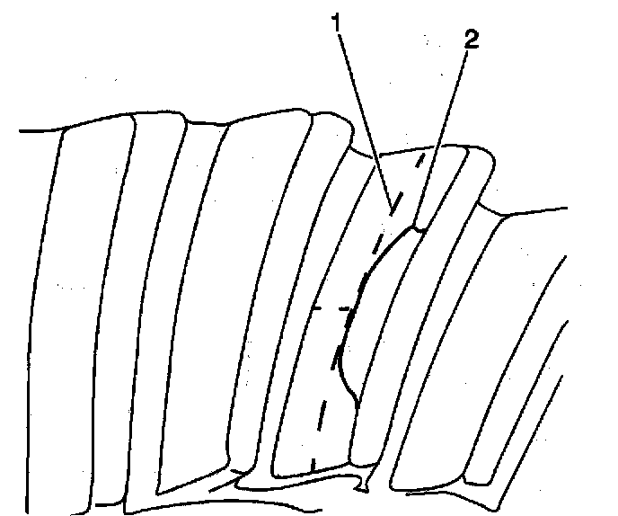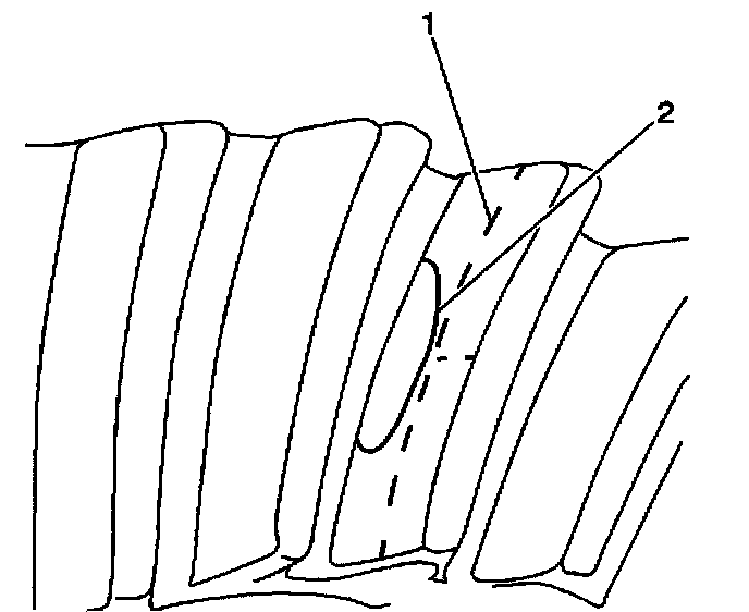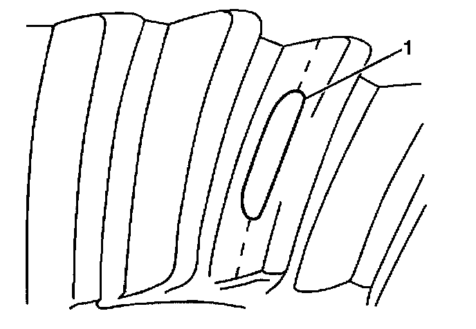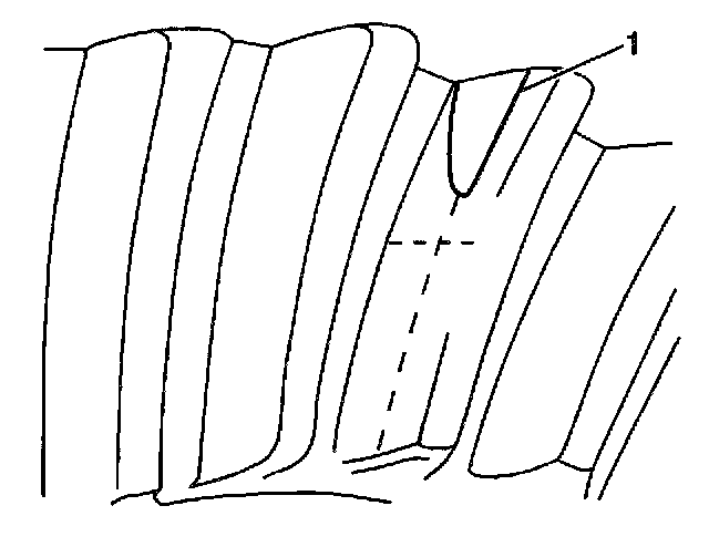 17. Increase the backlash in order to repair heel contact if a toe contact pattern (1) exists.