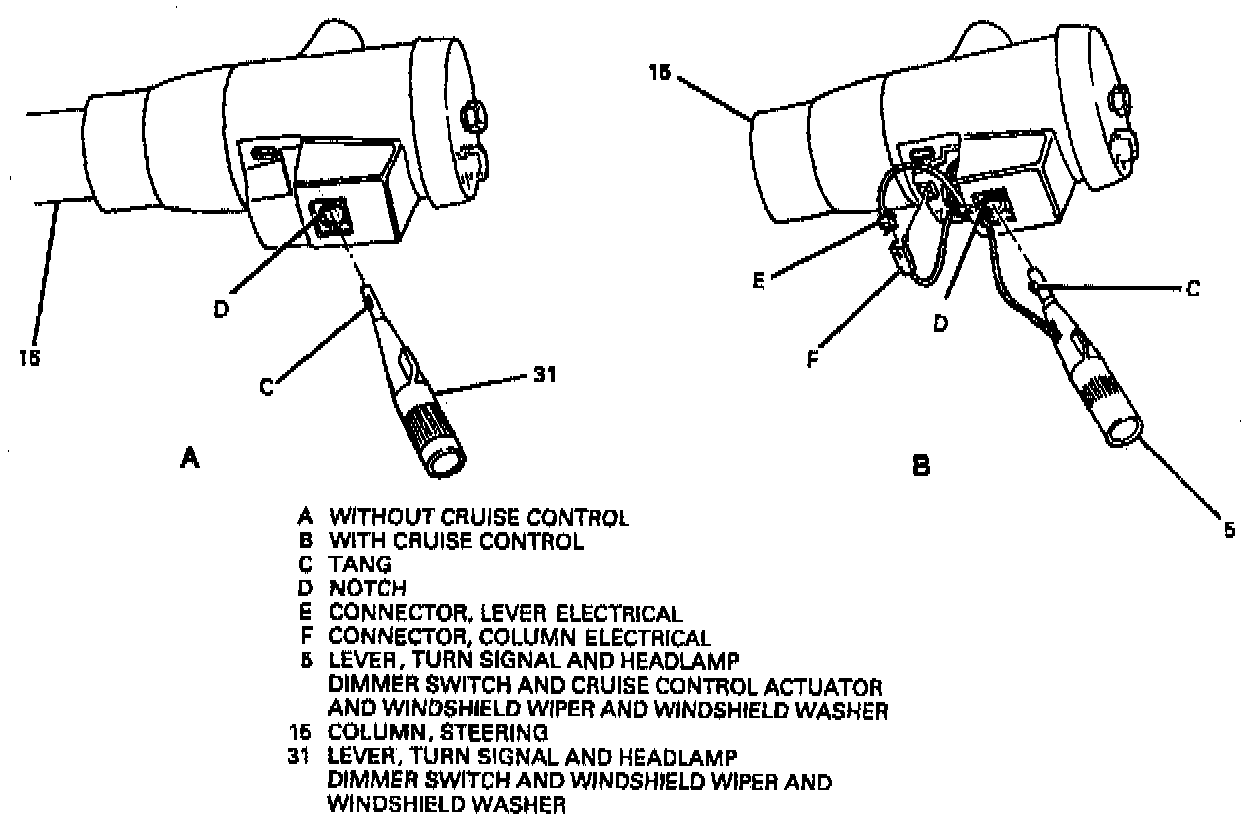 1. Position tang on lever (5 or 31) to notch in column (15).