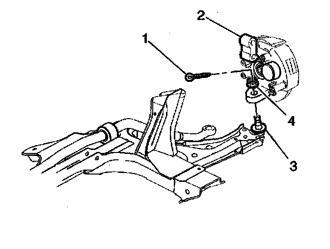 4. Install the nut (4) attaching the ball joint (3) to the steering knuckle (2).