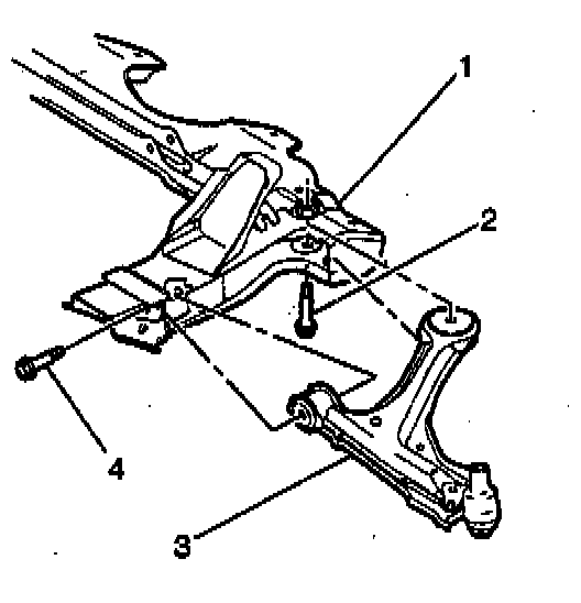 1. Install the control arms (3) to the crossmember (1). Snug the bolts.