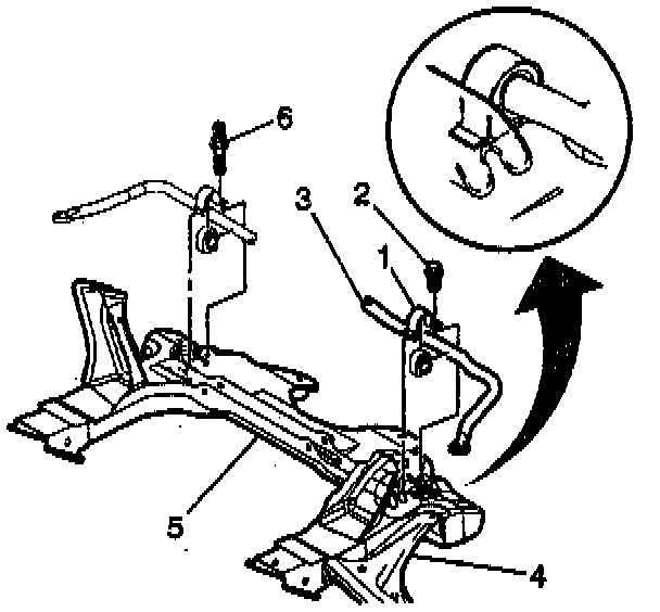 11. Remove the stabilizer bar (3) from the crossmember (5).