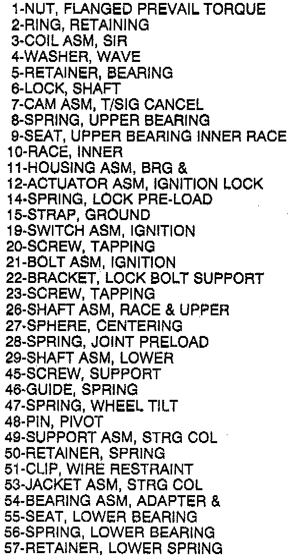 Tilt Steering Column - Legend: