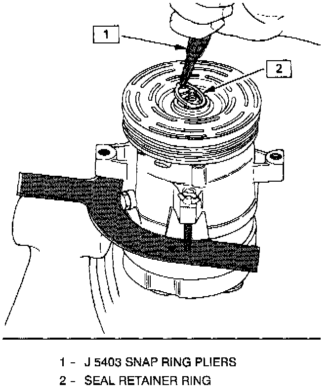 4. Remove the shaft seal retainer ring, using snap ring pliers J 5403.