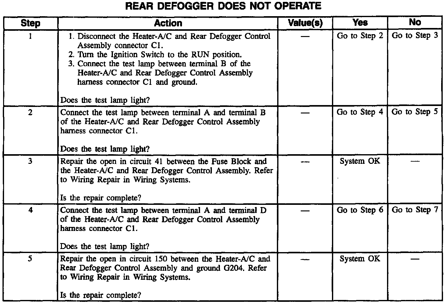Rear Defogger Does Not Operate (Part 1 Of 2):