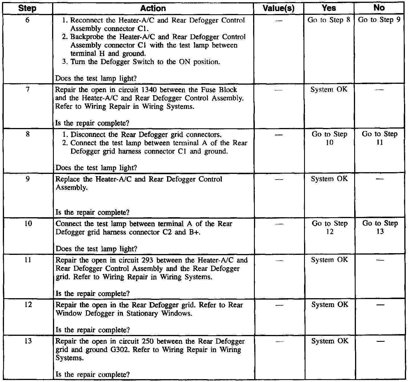 Rear Defogger Does Not Operate (Part 2 Of 2):