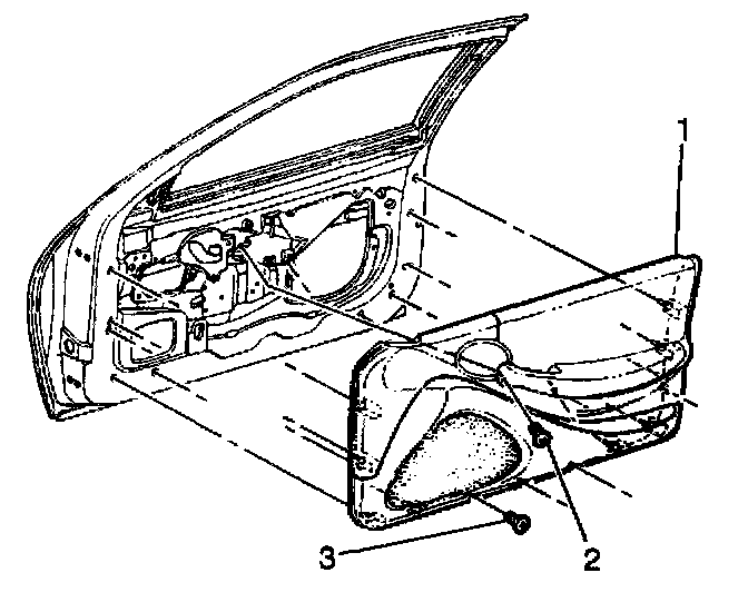 6. Remove the lower screws (3) from the front door trim panel.