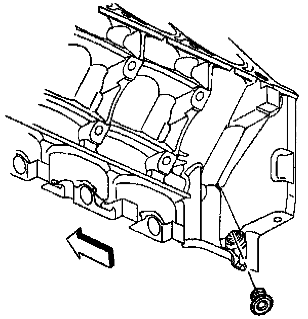 6. Remove the engine block left rear oil gallery plug.