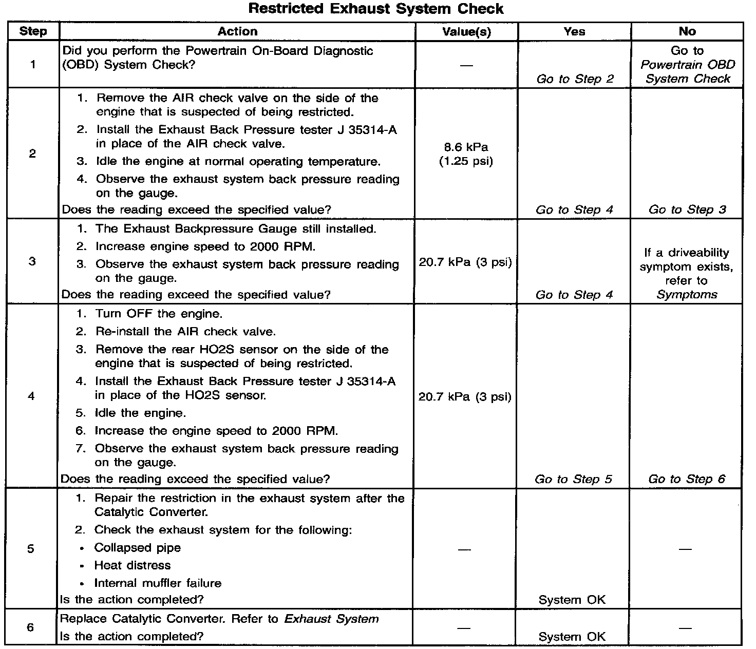 System Check - Restricted Exhaust