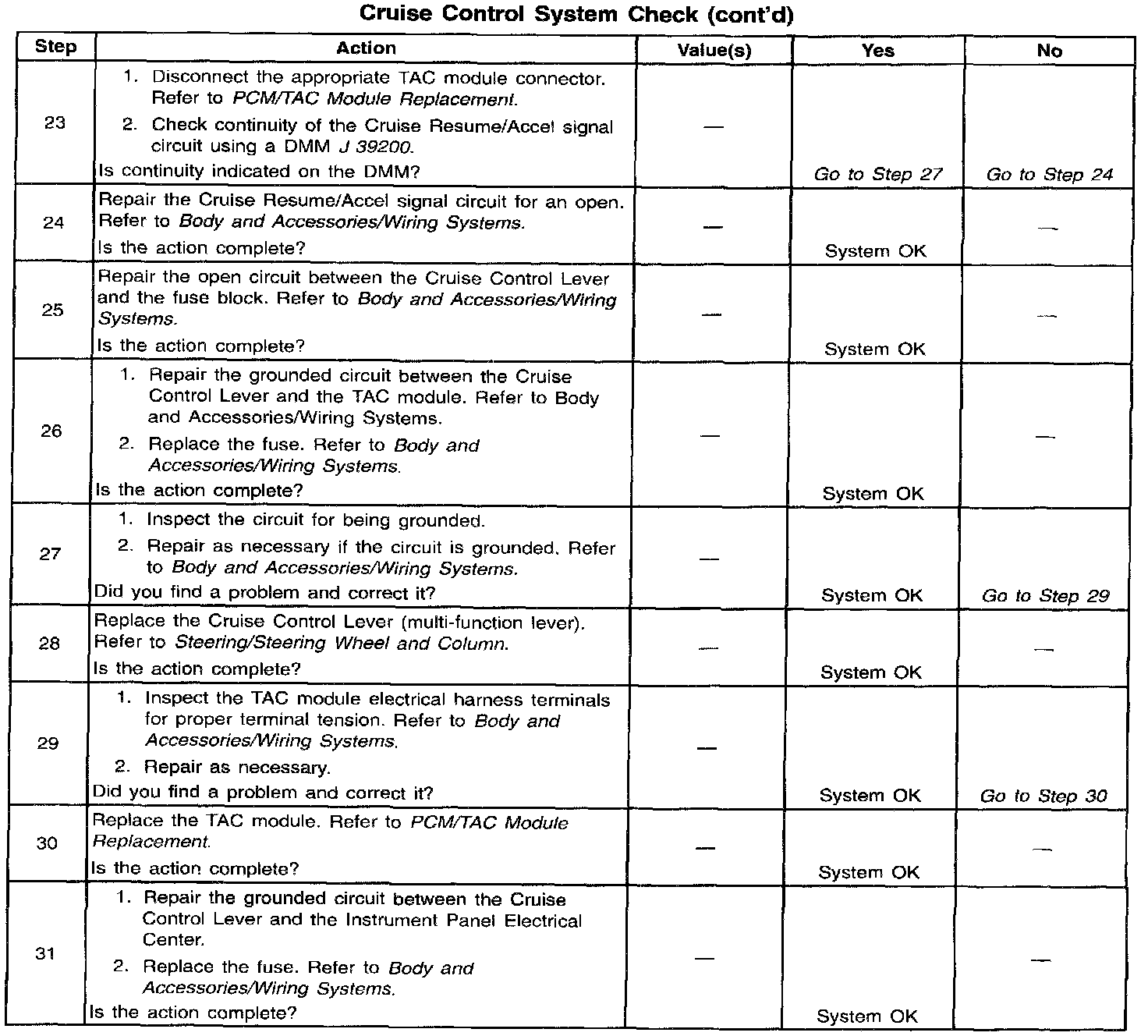 System Diagnosis - Cruise Control