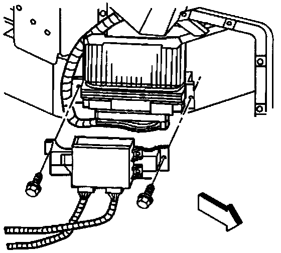 8. Loosen but do not remove the PCM rear retaining fastener. Use the rear retaining fastener as an anchor for the outer bracket.