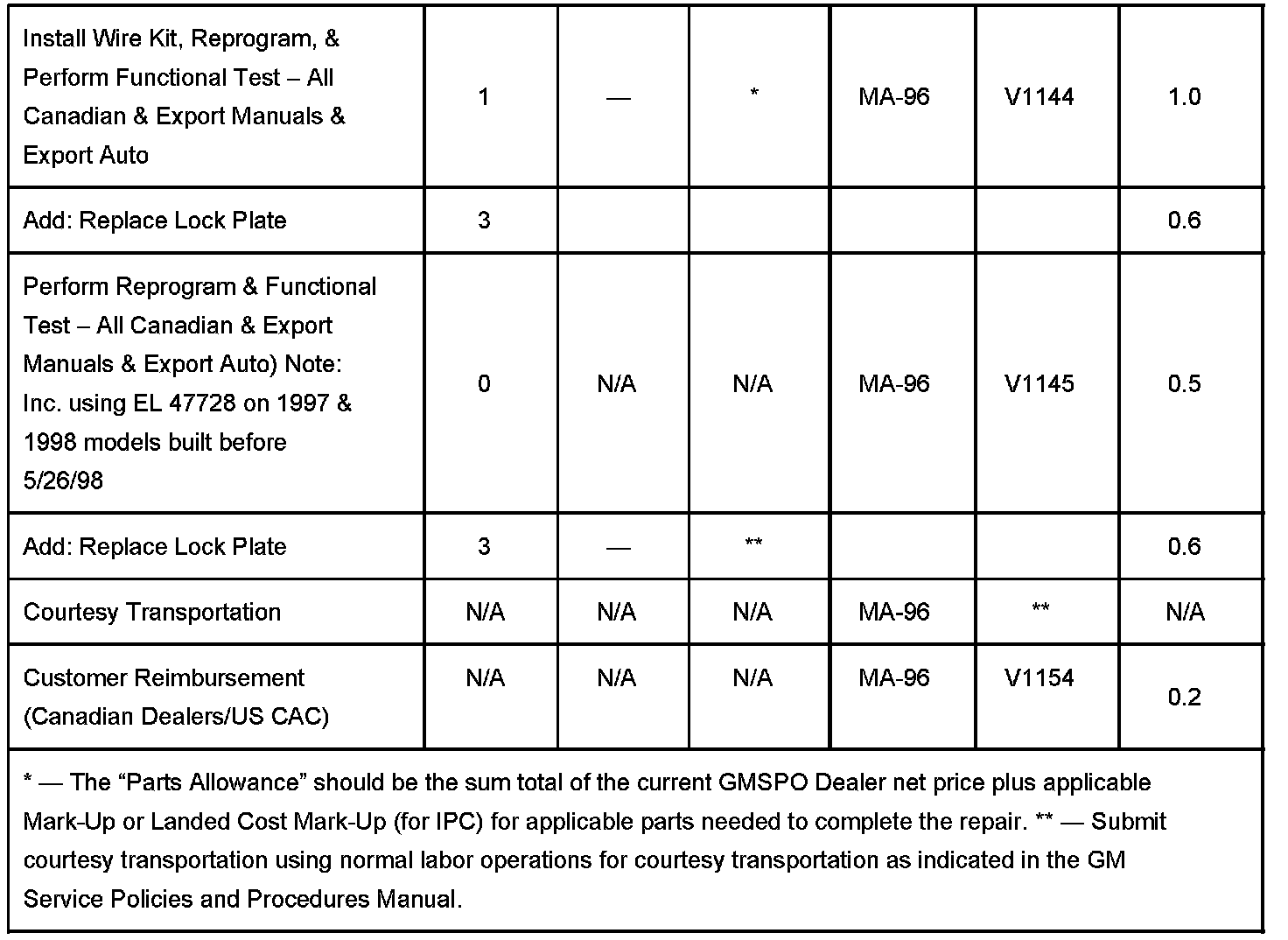 Dealers should confirm vehicle eligibility through GMVIS (GM Vehicle Inquiry System) prior to beginning recall repairs. [Not all vehicles within the above breakpoints may be involved.]
