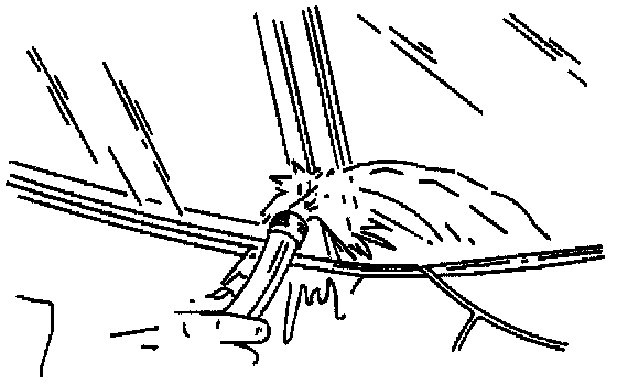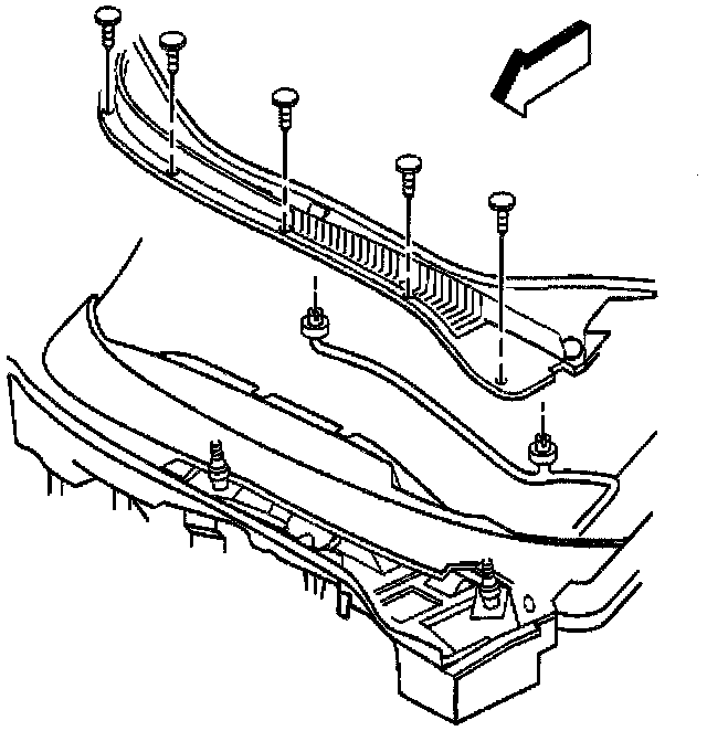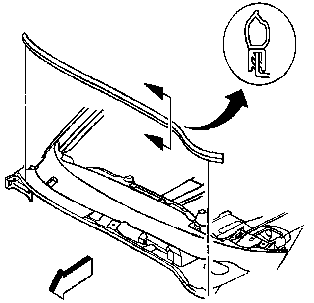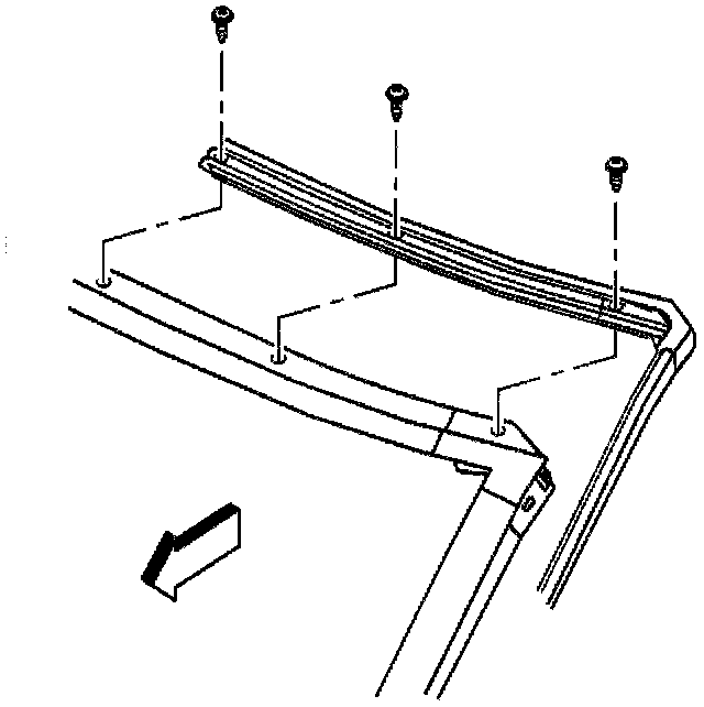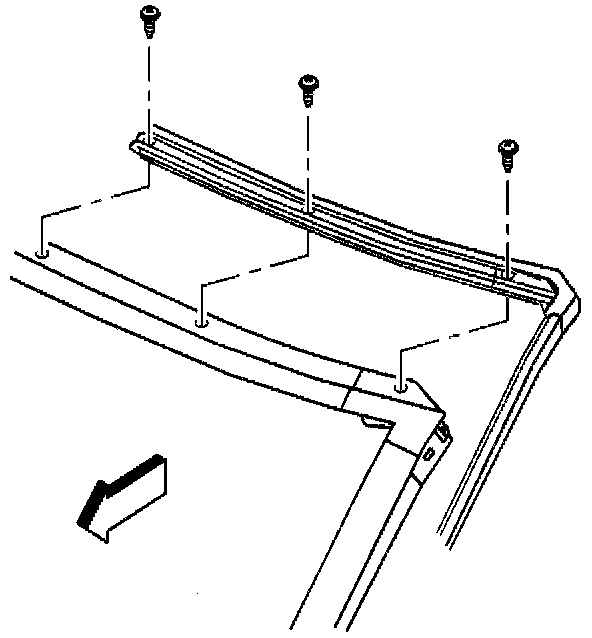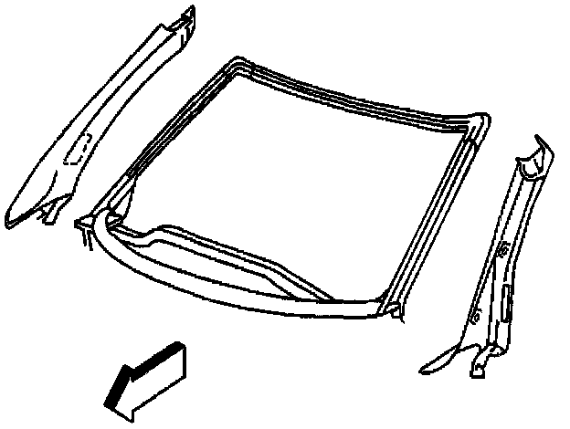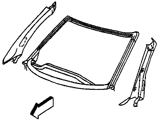 17. Remove the windshield side garnish moldings. Pull the molding with its retainers from the windshield frame.