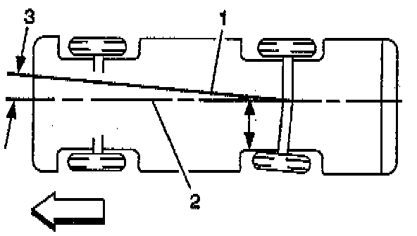 The front wheels aim or steer the vehicle but the rear wheels control the tracking. The tracking action is related to the thrust angle. Thrust angle (3) is defined as a path that the rear wheels will take (1). Ideally, the thrust angle would be geometrically aligned with the body centerline (2).