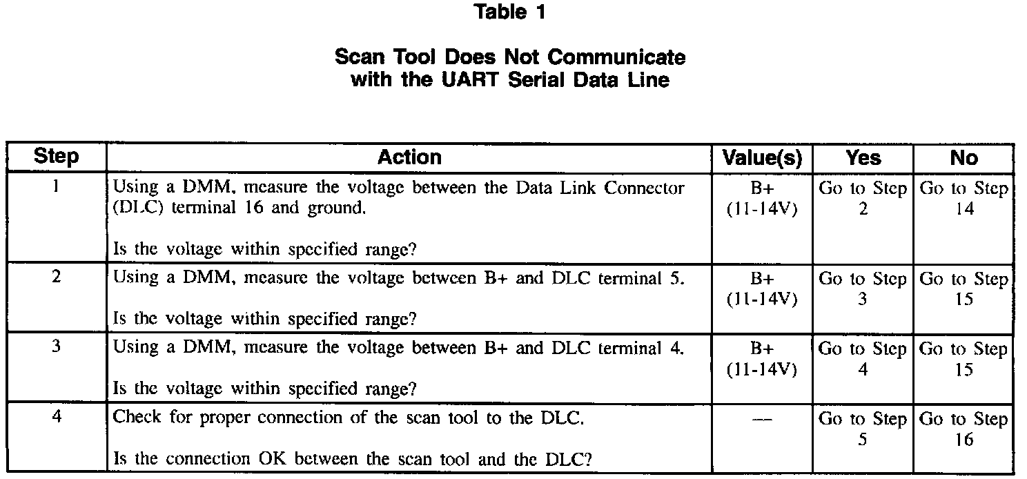 Table 1 Scan Tool Doesn't Communicate W/The UART Serial Data Link (Part 1 Of 3):
