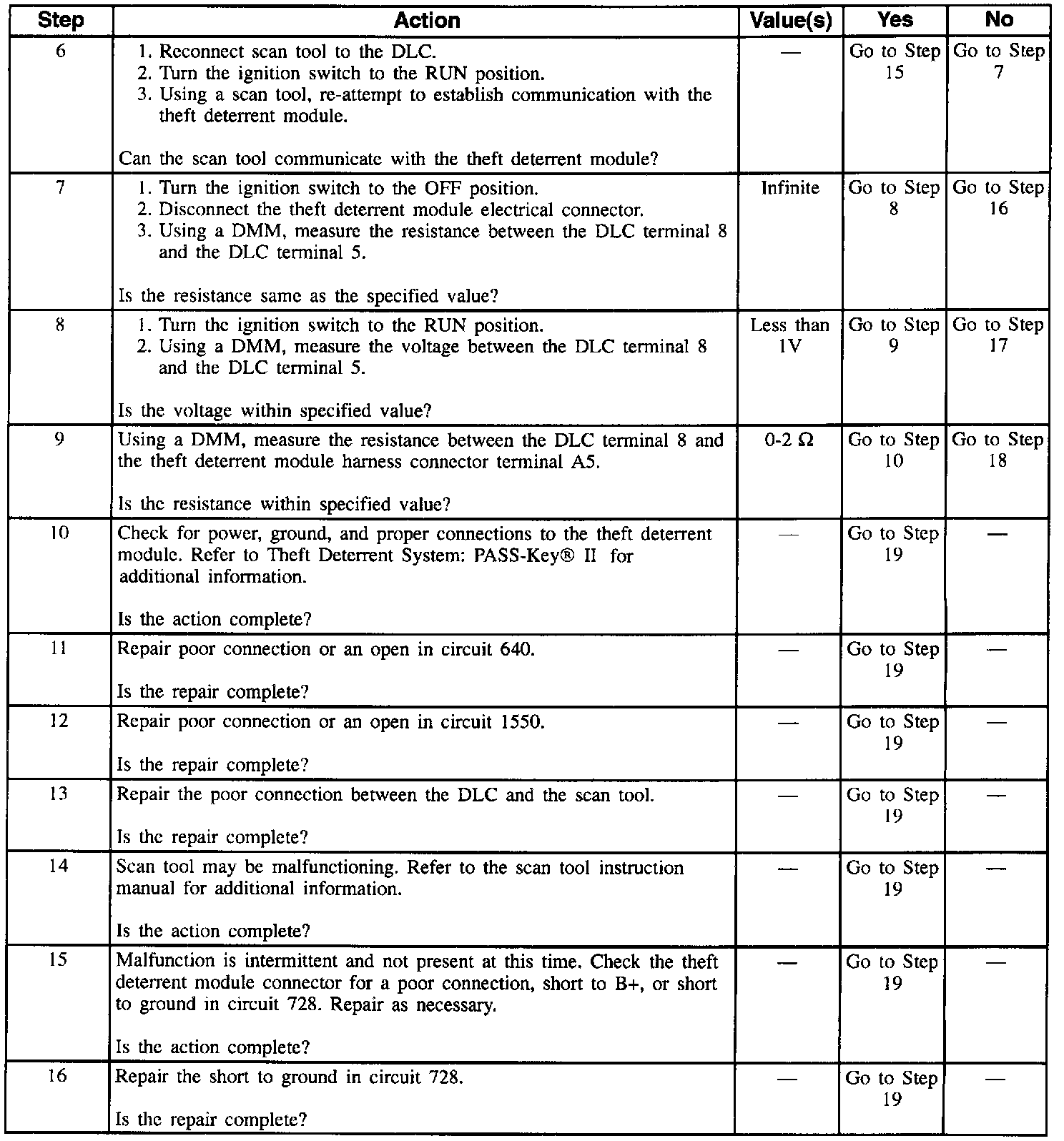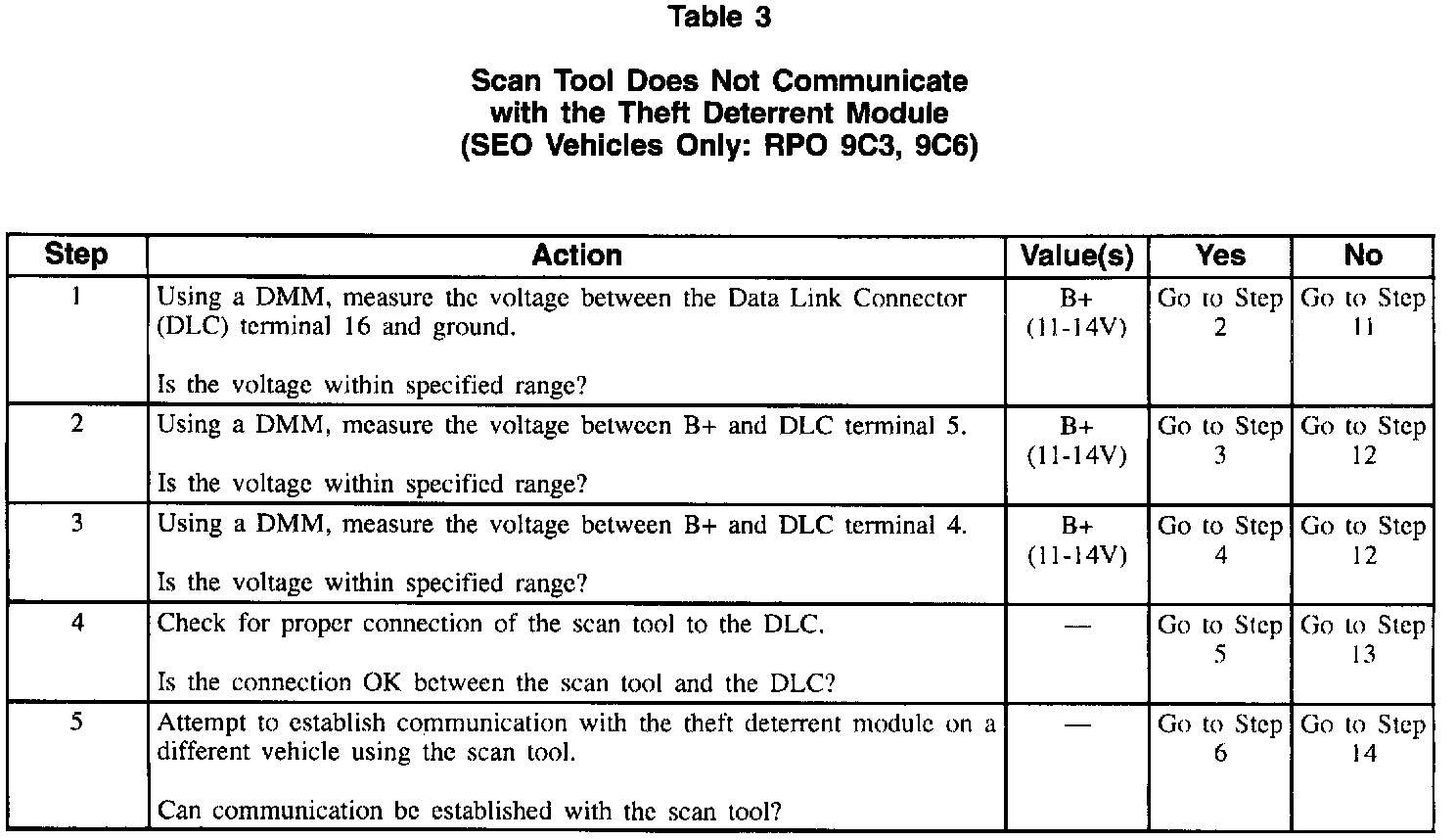 Table 3 Scan Tool Doesn't Communicate W/Theft Deterrent Module (SEO Vehicles Only: RPO 9C3, 9C6) (Part 2 Of 3):