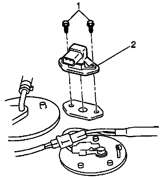 2. Secure the fuel tank pressure sensor with the two bolts (1).