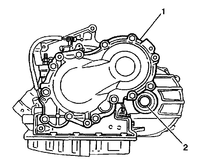 ^ Test for a damaged, missing or improperly installed rear cover gasket (1).