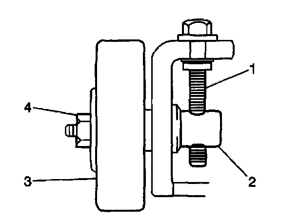 5. Loosen the idler pulley locknut (4).