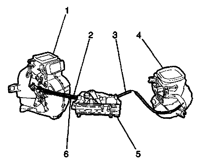 1. Disconnect the mode control cable (2) at the heater case (1).